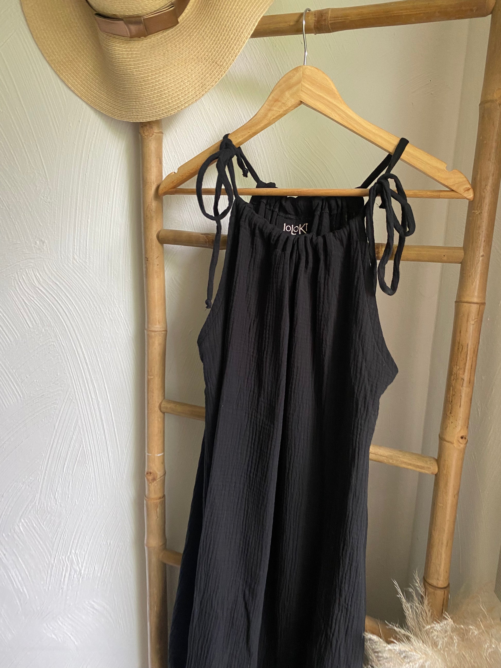 Unser Ärmelloses Kleid ist aus GOTS zertifizierter Baumwolle.